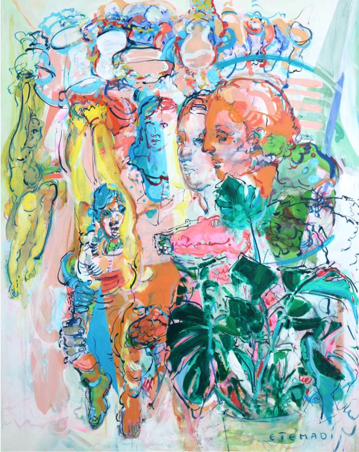 Elham Etemadi, bien au-delà de sa propre exploration artistique, accorde une place prépondérante à son public, curieuse de recueillir ses réactions et ses impressions après chaque exposition. Pour elle, il est essentiel de sonder l’attrait d’une forme, la netteté d’un propos ou encore la séduction d’une couleur. Si son art est une expres- sion personnelle, il n’en demeure pas moins un pont tendu vers les autres. Loin de concevoir le spectateur comme un simple observateur muet, elle l’invite à s’engager dans une conversation, à participer activement à l’échange d’idées, aux question- nements et aux réponses qui animent son œuvre.